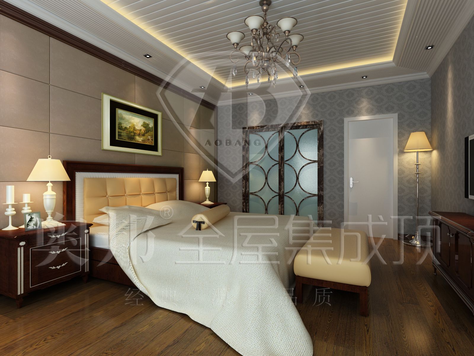 臥室頂面作適當的裝飾,不僅能美化室內環境,還能營造出豐富多彩的室內空間藝術形象。在選擇吊頂裝飾材料與設計方案時,要遵循既省材、牢固、安全、又美觀、實用的原則。吊頂不易過于復雜,面積稍大的可做二級吊燈、分層吊頂,小空間適宜平面式吊頂,而空間層高低的則可用特殊的貼頂式安裝方法進行吊頂。