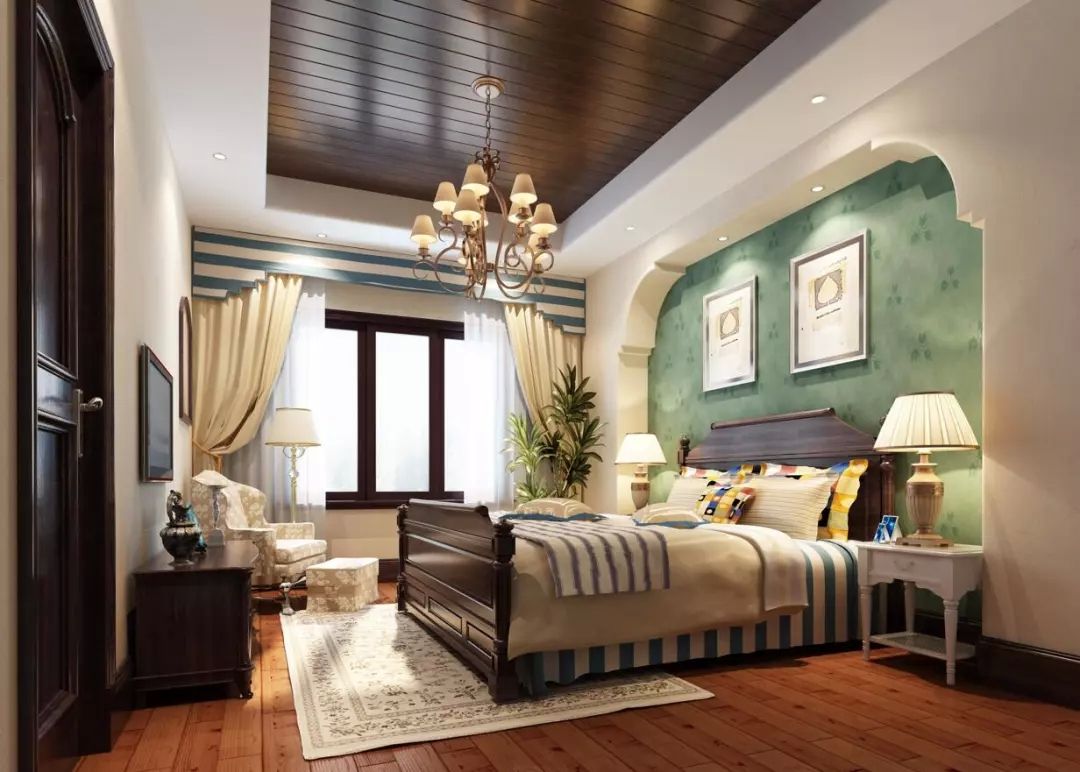 (奧邦美式風格臥室吊頂&床頭背景墻)