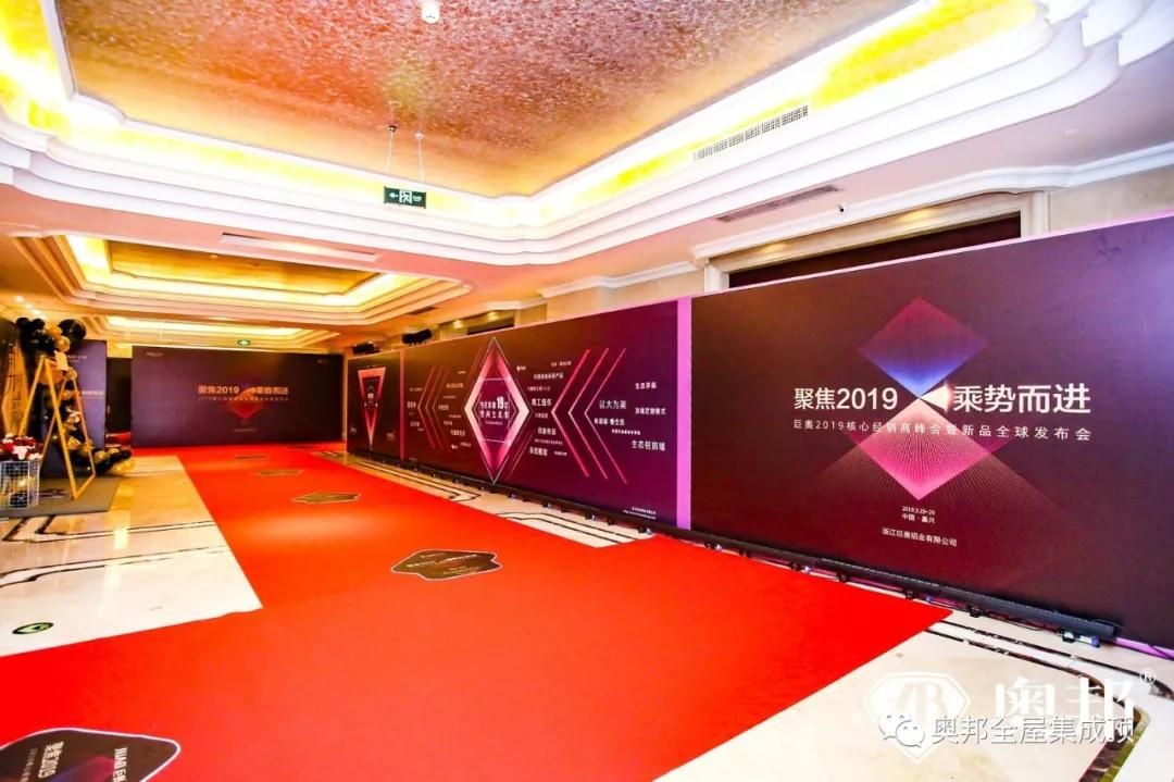 3月28日,奧邦2019核心經銷商峰會暨新品發布會在嘉興龍之夢大酒店盛大開幕。奧邦總經理、執行副總、各部門負責人、天花吊頂協會秘書長丁輝、專家學者、終端培訓導師以及全國各地的經銷商家人、行業媒體匯聚一堂,共襄盛會,共同見證奧邦“聚焦2019·乘勢而進”!